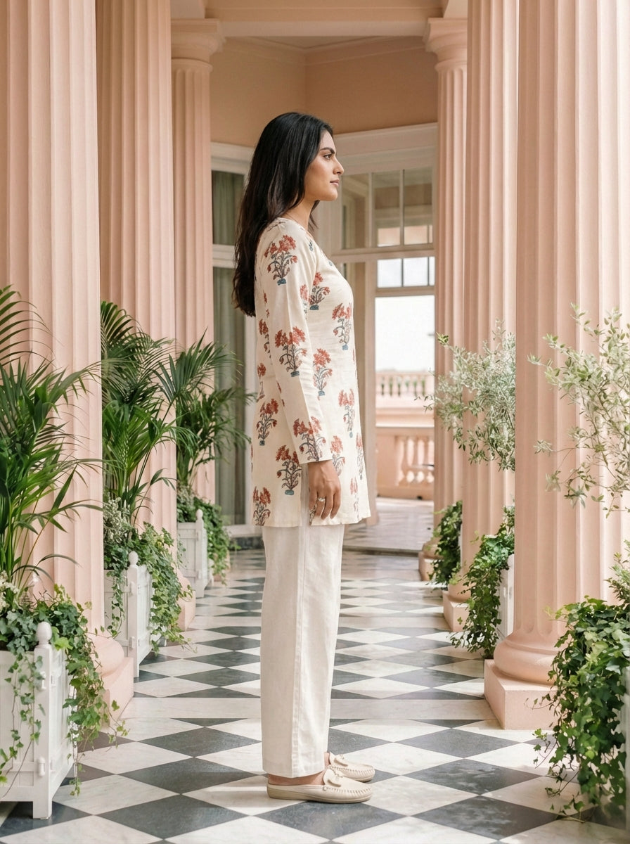 A graceful and classic flower buta prints with corset back and square neck blends bold pattern with effortless summer style.